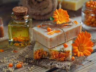- Антисептическое и антибактериальное действие. Благодаря содержанию эфирных масел препараты с календулой используют при порезах, пролежнях, экземах или язвах.